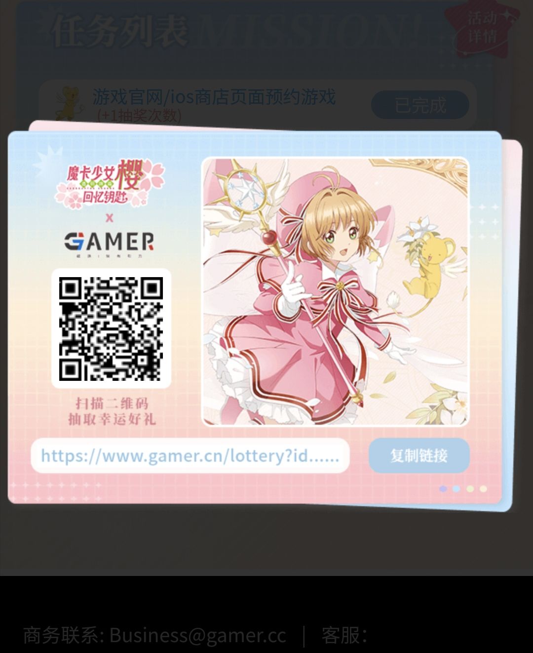 能抽VIP月卡和328礼包!快冲!! 磁场✖《魔卡少女樱:回忆钥匙》抽奖活动来袭!完成任务即可参与抽奖,VIP月卡、328好礼等你拿!https://www.gamer.cn/lotterym?id_3a0ddecb-fe15-2fec-5b12-f0fffea03d92#游戏安利#魔卡少女樱回忆钥匙#带着小樱去旅行