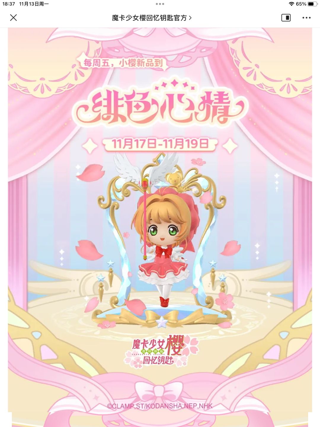 你想拥有限定小小樱盲盒吗?《魔卡少女樱回忆钥匙》9月21日梦境相约,参与预约活动即可获得限定五星盲盒!https://sakura.qingcijoy.com/pre-registration/index_mobile.html?friend_id=78785