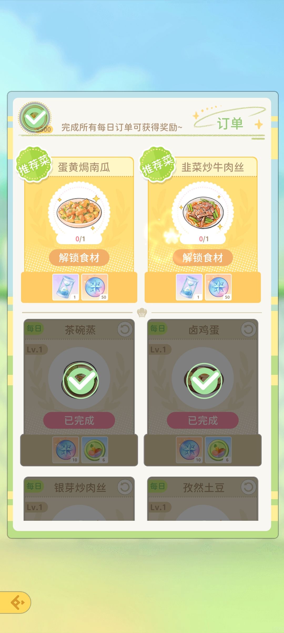 🌸【故梦回影】p1 五星:小小新年 ⭐⭐⭐⭐⭐ 六星:小小和风樱 ⭐⭐⭐⭐⭐⭐ ✦ 解锁食材:南瓜🎃 ✦ 解锁菜品:【53-蛋黄焗南瓜】【54-南瓜挞】 ①【蛋黄焗南瓜】 1 鸡蛋 南瓜 2 鸡蛋 南瓜 奶油 3 鸡蛋 牛奶 南瓜 4 鸡蛋 南瓜 糖 5 鸡蛋 南瓜 玉米 ②【南瓜挞】需要黄油 1 面粉 牛奶 南瓜 黄油 2 面粉 南瓜 糖 奶油 黄油 3