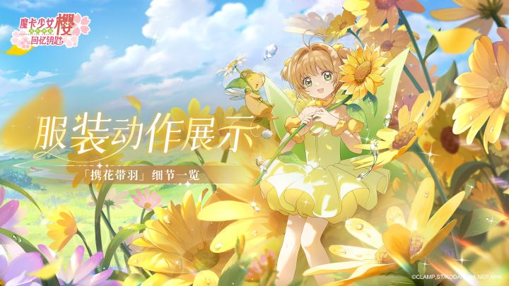 繁花荼蘼,伴羽翩然。本周新品「携花伴羽」系列盲盒限时上架!「携花伴羽」PV:✦服装动作展示✦「6星·红心绽放」设计独特的华丽礼服。红色裙身,白色花边,头上小王冠的爱心和裙摆处的爱心遥相呼应。「5星·精灵小樱」鹅黄色蓬蓬裙映衬着绿色双翼,亮色系的搭配,让小樱在夜空中也闪闪发光。日光逐渐洒落,繁花次第开放,绚丽的色彩映照于眼前。一起跟随落羽飘落的轨迹,拾级而上吧!红字为本周密令福利在