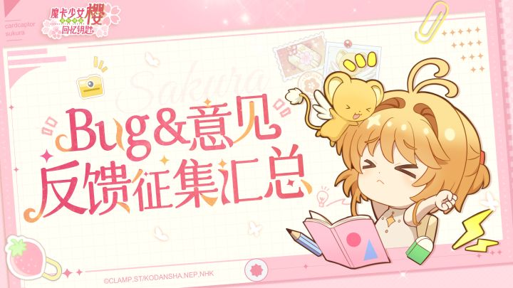 各位入梦者们大家好~这里是忆酱!《魔卡少女樱:回忆钥匙》现已正式上线啦!上线伊始,入梦者们在体验过程中可能会遇到一些未知的问题,或是有意见或建议希望反馈忆酱为入梦者们准备了BUG与意见反馈专楼,各位入梦者们可以在本帖评论区里根据下方Bug反馈格式填写反馈内容。意见和建议,也都可以直接发在评论区~ps.请在单独的楼层回复,不要楼中楼进行反馈哦~收到大家的反馈后,忆酱会第一时间记录并提交给捕