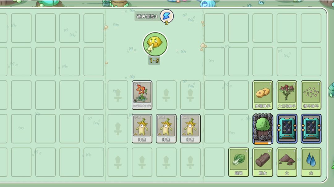 资源管理 注意水资源的利用,前期水资源匮乏,能用最少战力通关就尽量少造植物,多余种子留着后期杂交。植物在收割机中可转化为种子,1株植物能得4粒种子,合理利用此机制。 卡牌合成 卡牌不同级数都能合成,级数为两张卡牌级数相加,最高10级。前期多合成低等级卡牌过渡,中后期根据战斗需求有针对性地合成高等级卡牌。 阵容搭配 前期单植物阵容,前排西瓜,中排橘子,后排橘子可带一个柠檬减攻击;