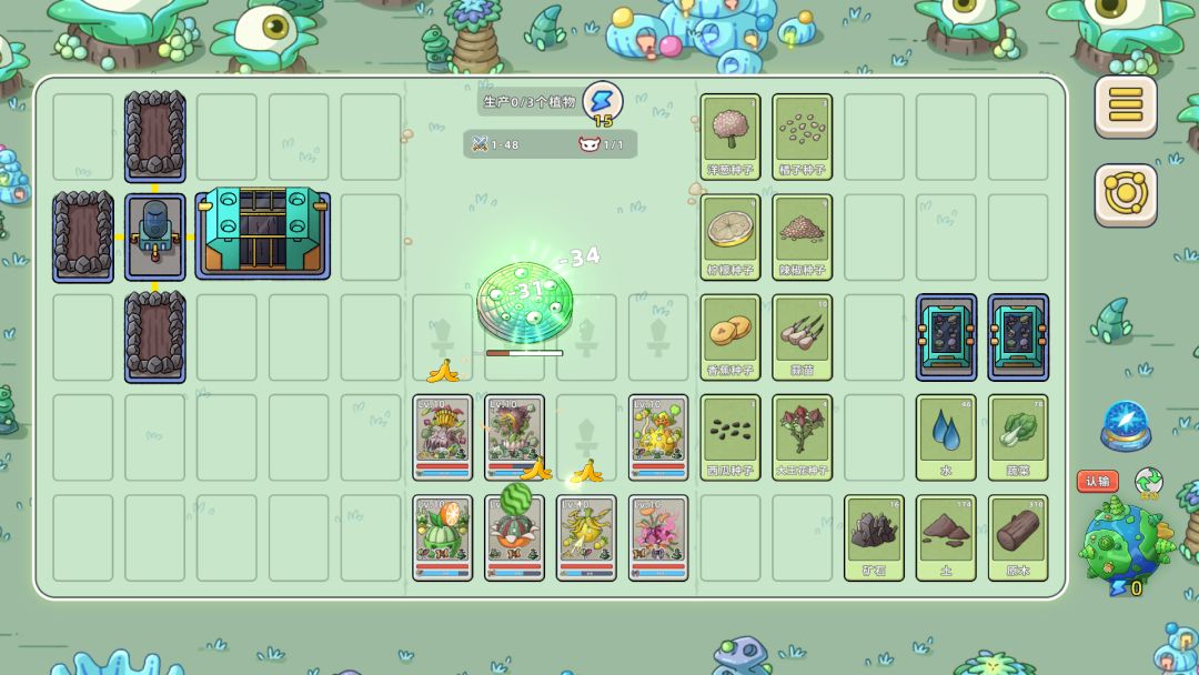 #浅评一下 1-探索点没有有效的回复手段,导致水滴严重不足 2-测试服就没有必要卡那么紧张的资源 3-图鉴查看困难,种错了容易GG 4-产种子的优先级,控制的卡片居然不是先分解,建议改成手动拖拽分解,1级卡和10级卡分解居然给一样的东西 5-bug有点多,打完boos,在打boos期间生产的东西不见了。 6-卡片之间的联动性太差了,前排五种,后排居然才三种。 7-自动探索居然在打怪的时候不能探索