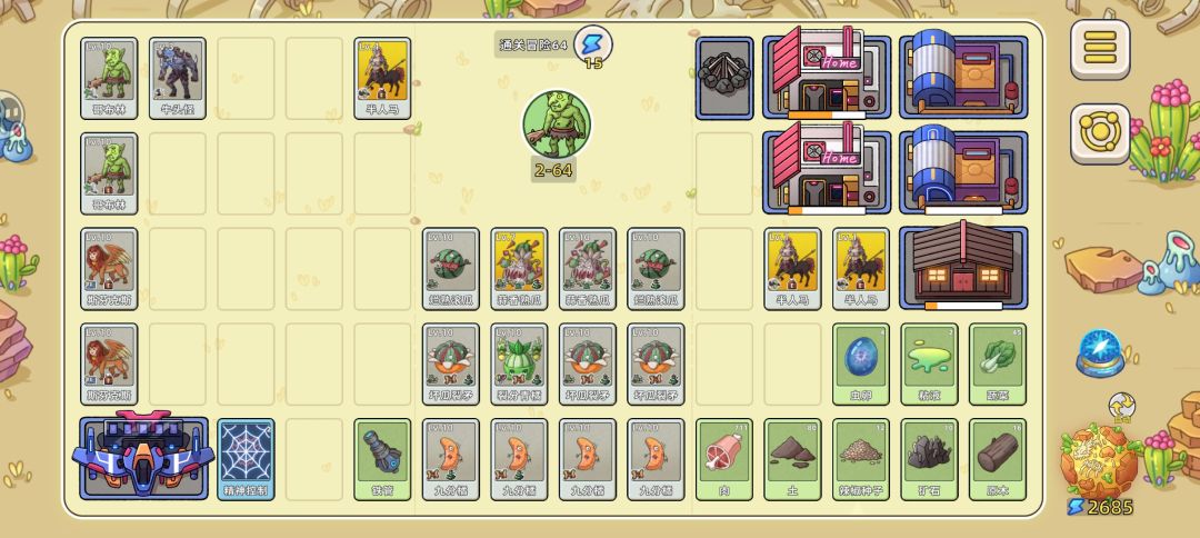 一.卡牌介绍 1.怪物卡牌,5条属性分别是,攻击,生命,防御,攻击范围,攻速(攻击1次所需时间,所以攻速数字越低越好) 怪物卡牌等级上限,融合卡牌取最高的上限(所以打动物就行,植物太难打了,我动物打到45上限,植物35都看不见) 2.卡牌,光。拖拽到植物上面,可以产生一个对应的种子 3.卡牌,粘液、虫卵、铁制品等。无用物,可直接丢弃 4.卡牌删除,把卡牌拖到屏幕外就可以删除了 二.阵容推荐 前期,