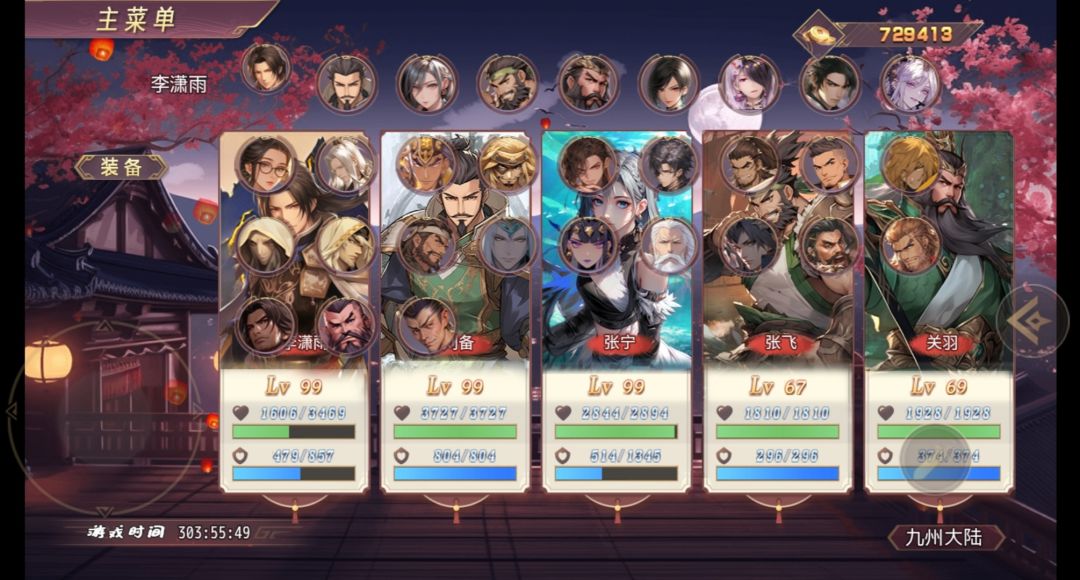 三国真龙传是一款嘎嘎好玩的游戏,注意!是单机噢!养成属性贼拉高的一款单机游戏,几乎可以媲美网游的周期,目前玩了200多个小时,记录一下阵容搭配的心得吧! 工欲善其事,必先利其器! 0氪的小伙伴们注意了,这里推介一个攻守兼备,续航能力超强的阵容。 刘备—专属技能仁义无双,增加25%的攻防,五行技能金系 李潇雨—这个主角被世人称为弱鸡,弱鸡对于一个主角来讲那是大错特错,那只是他们没有开发出来这