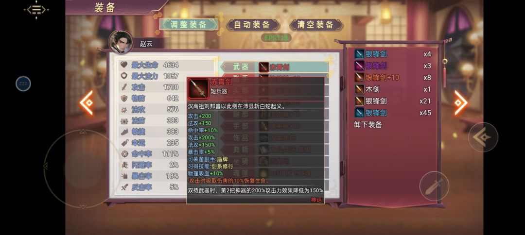 三国真龙传游戏心得 1,前期所得20级以上的马匹千万不要拿去卖了,因为在前期,马匹这个东西是个稀缺资源,重点来了,刺杀董卓的时候,剧情需要五匹橙色战马,基于这个条件,前期必须练战马。 2,赤兔马前期乏力的问题,很多伙伴可能都发现了,赤兔马加的血量很少,敏捷也不够高,但它为什么是红色顶级马匹呢?来来来,上数据,赤兔马也是神器特有属性最大生命×110%,最大敏捷×110%,你以为这就完了吗?还没完