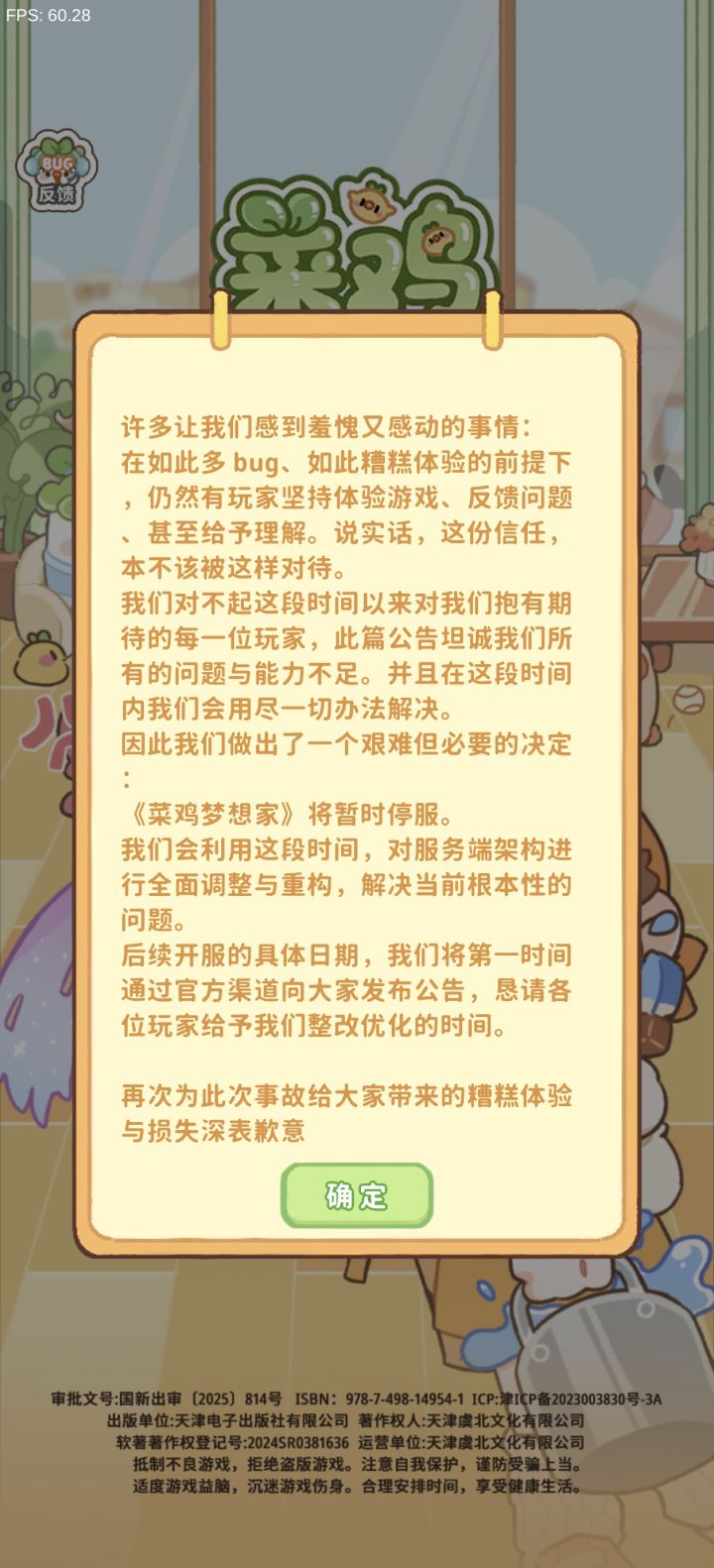 想要学怎么遛狗的,可以来向菜鸡学习,从去年年底在小红薯🍠上刷到他们的宣传,当时就觉得休闲的竞品开始出现了,觉得很新奇,想要下载,发现要年初才上,就在tap tap预约了。年初的时候发现他说要年中上,5月份左右,我又开始等,到了年中,发现他说要年底了,哈哈哈哈哈好不容易等到了,现在他又要停服了,我其实之前给你们评价的时候,我就有想过你们会不会在公开测试的时候出什么幺蛾子,果然。一个没有信誉的游戏,