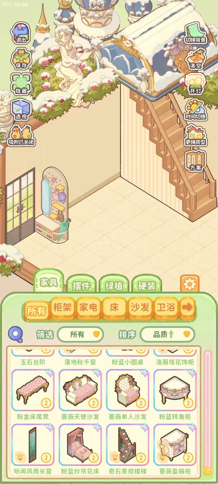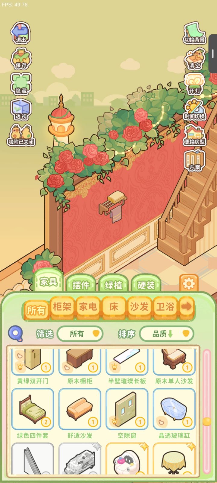穿模这种bug问题已经及时游戏中反馈了。说一说玩下来的感受1.画面太糊,小摆件长啥样都看不清。升级以后的奖励页面,只能大概看到奖励什么,具体是什么东西很糊,也不能点开详情页。2.很多物品不知道具体是什么作用的,比如玻璃屏,详情页也没有说明,只有风格介绍作者介绍是完全不够的,介绍应该写清楚这个东西是个什么东西,作用是什么吧。3.物品分类很奇怪,厨房的就是厨房的,浴室的就是浴室的,柜子就是柜子,