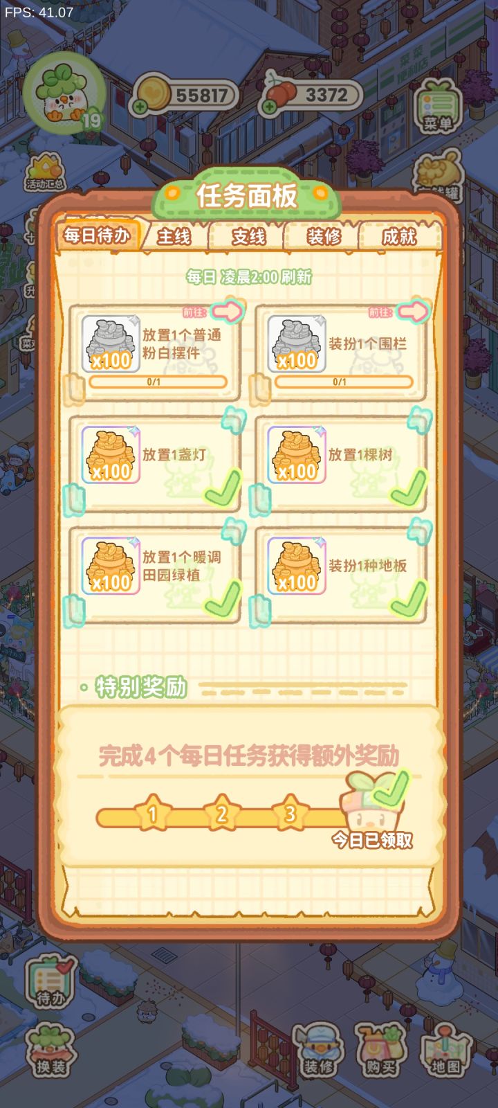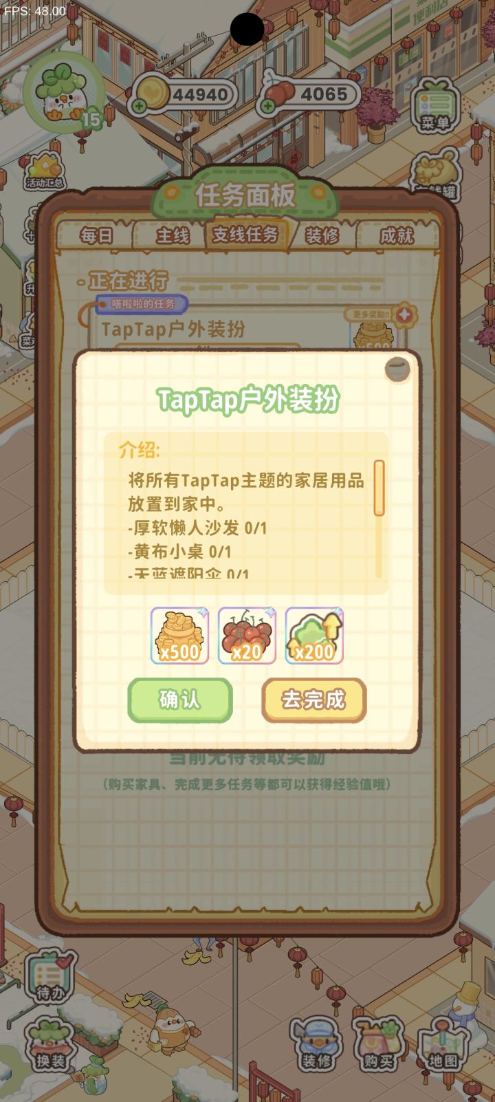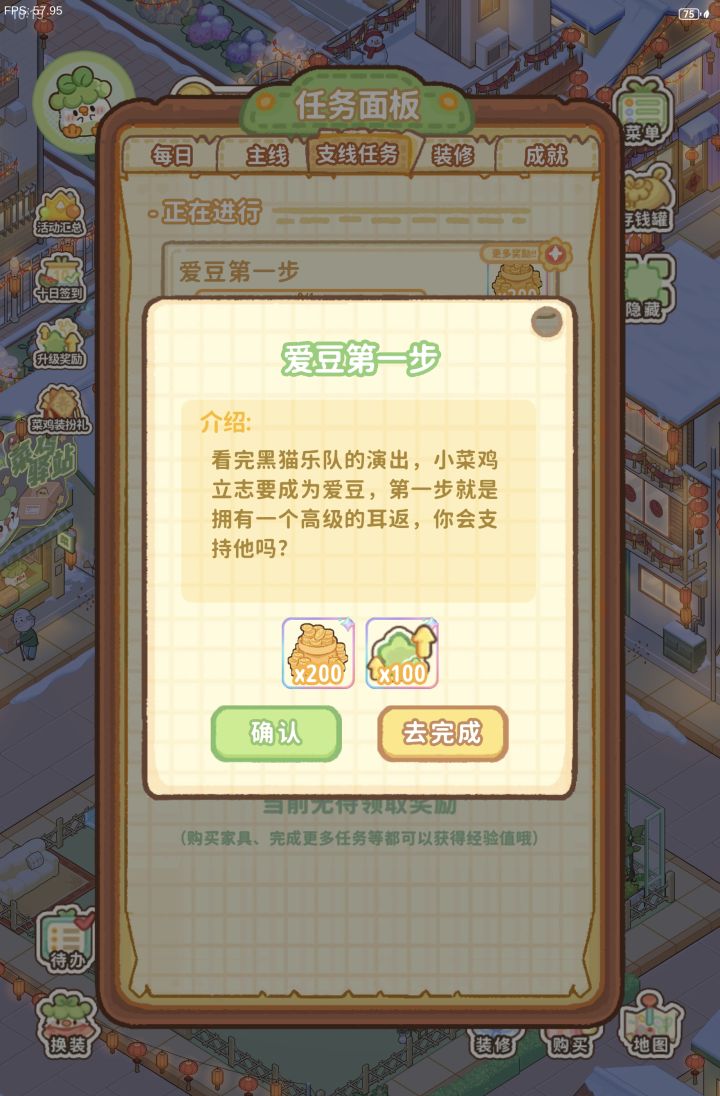 感觉每次都要退出来看好麻烦,在任务处加一个追踪,在装修的页面加一个任务要求会方便很多#菜鸡梦想家