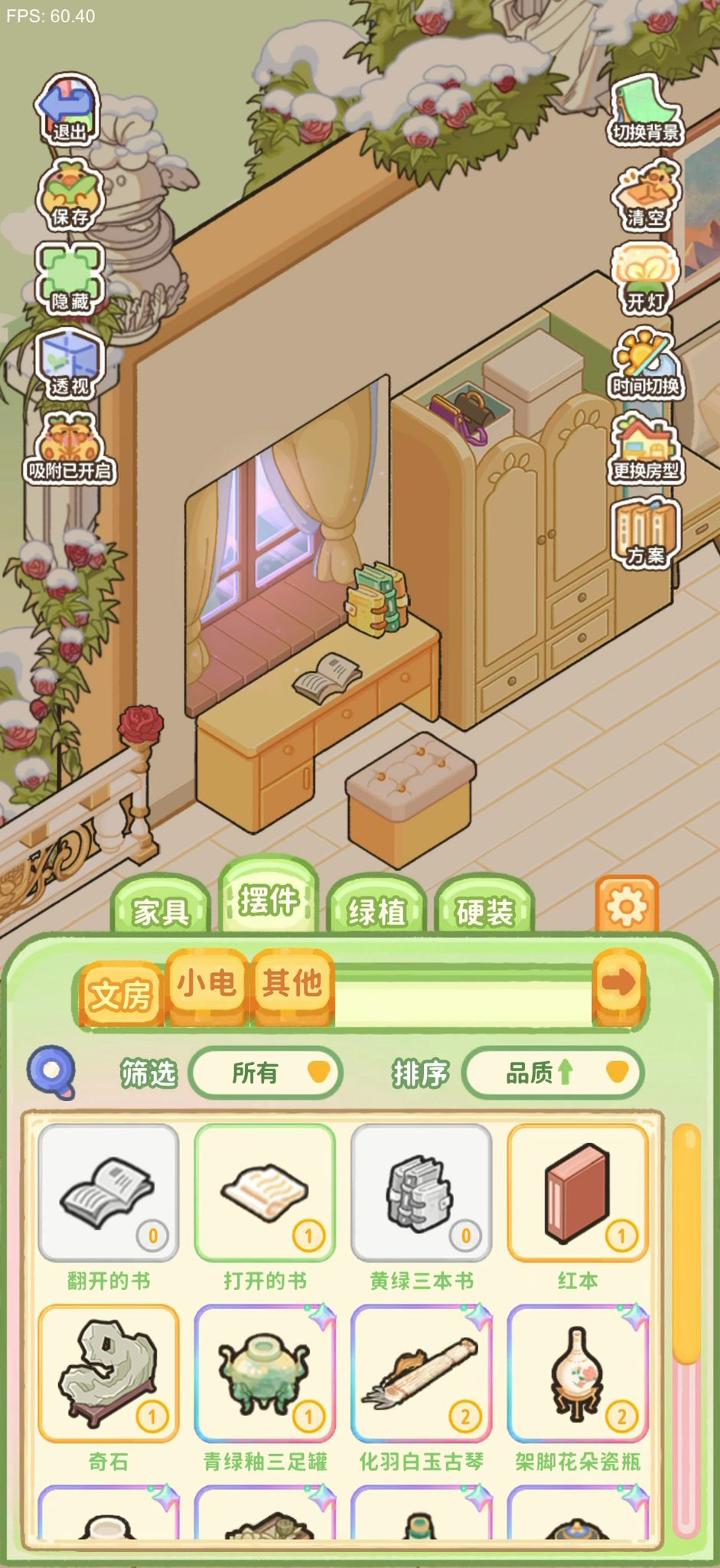 穿模这种bug问题已经及时游戏中反馈了。说一说玩下来的感受1.画面太糊,小摆件长啥样都看不清。升级以后的奖励页面,只能大概看到奖励什么,具体是什么东西很糊,也不能点开详情页。2.很多物品不知道具体是什么作用的,比如玻璃屏,详情页也没有说明,只有风格介绍作者介绍是完全不够的,介绍应该写清楚这个东西是个什么东西,作用是什么吧。3.物品分类很奇怪,厨房的就是厨房的,浴室的就是浴室的,柜子就是柜子,