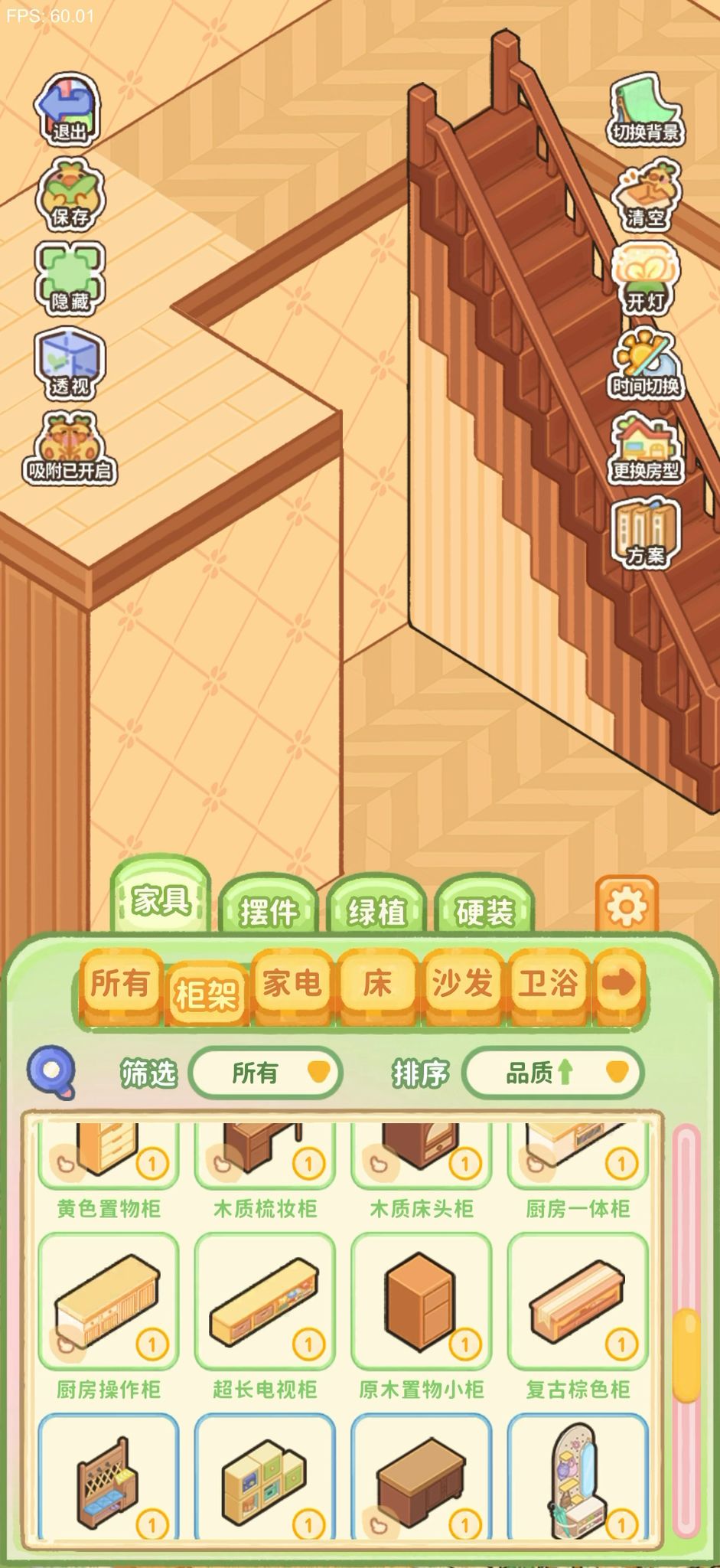 穿模这种bug问题已经及时游戏中反馈了。说一说玩下来的感受1.画面太糊,小摆件长啥样都看不清。升级以后的奖励页面,只能大概看到奖励什么,具体是什么东西很糊,也不能点开详情页。2.很多物品不知道具体是什么作用的,比如玻璃屏,详情页也没有说明,只有风格介绍作者介绍是完全不够的,介绍应该写清楚这个东西是个什么东西,作用是什么吧。3.物品分类很奇怪,厨房的就是厨房的,浴室的就是浴室的,柜子就是柜子,