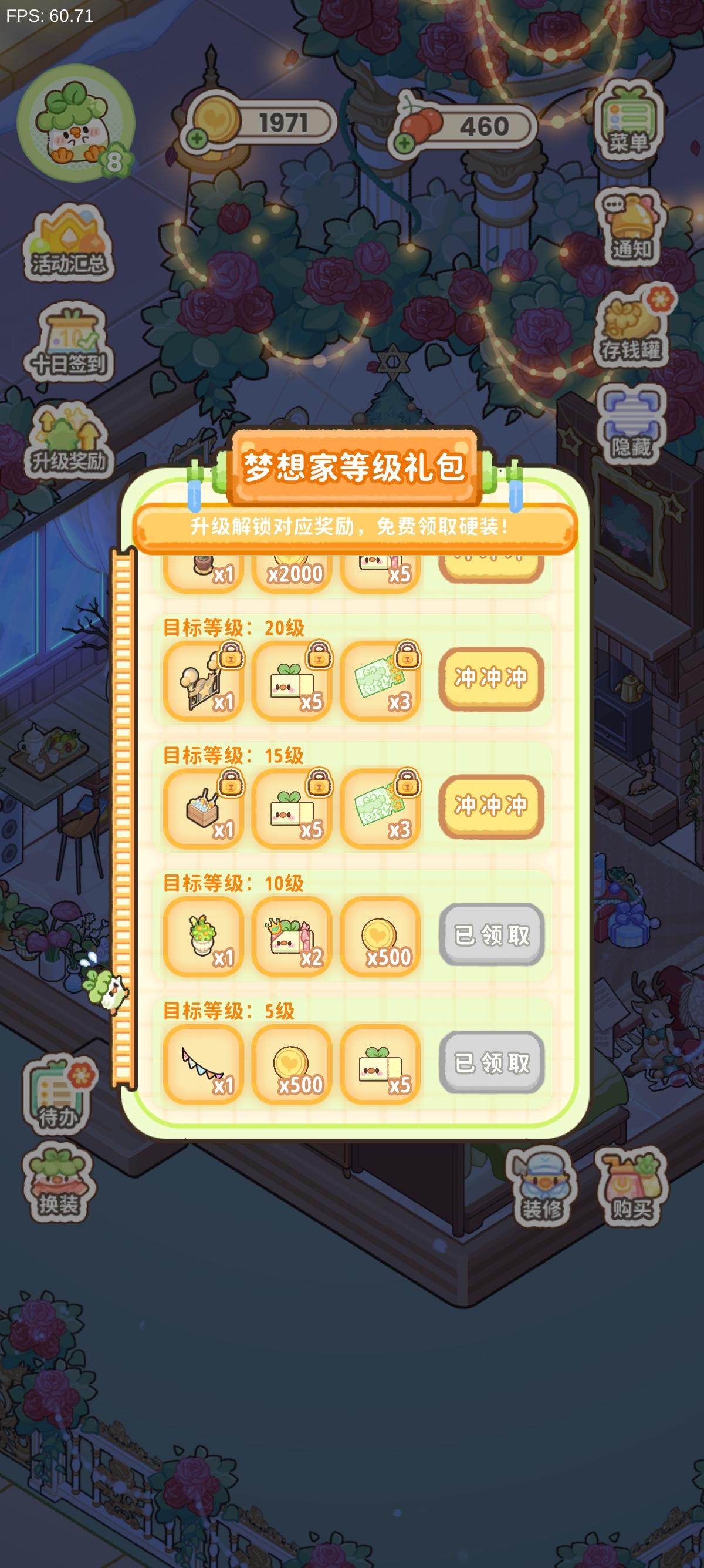 昨天突然发现微信小程序提醒菜鸡梦想家可以下载了,中途下载的时候有两次下载中断,以为是自己手机的问题,然后下载完成后进不去,以为是网络问题,后来上Tap一看才发现是炸服了,但是依旧没放弃,在五点多的时候进去了一次,画风QQ的还是蛮可爱,但是在放置家具的时候没有网格辅助,也没有看到可以旋转家具的按钮,后来因为回了一个信息就再也没进去过了,晚上十一点左右觉得时间挺晚了估计玩家少一些了,点