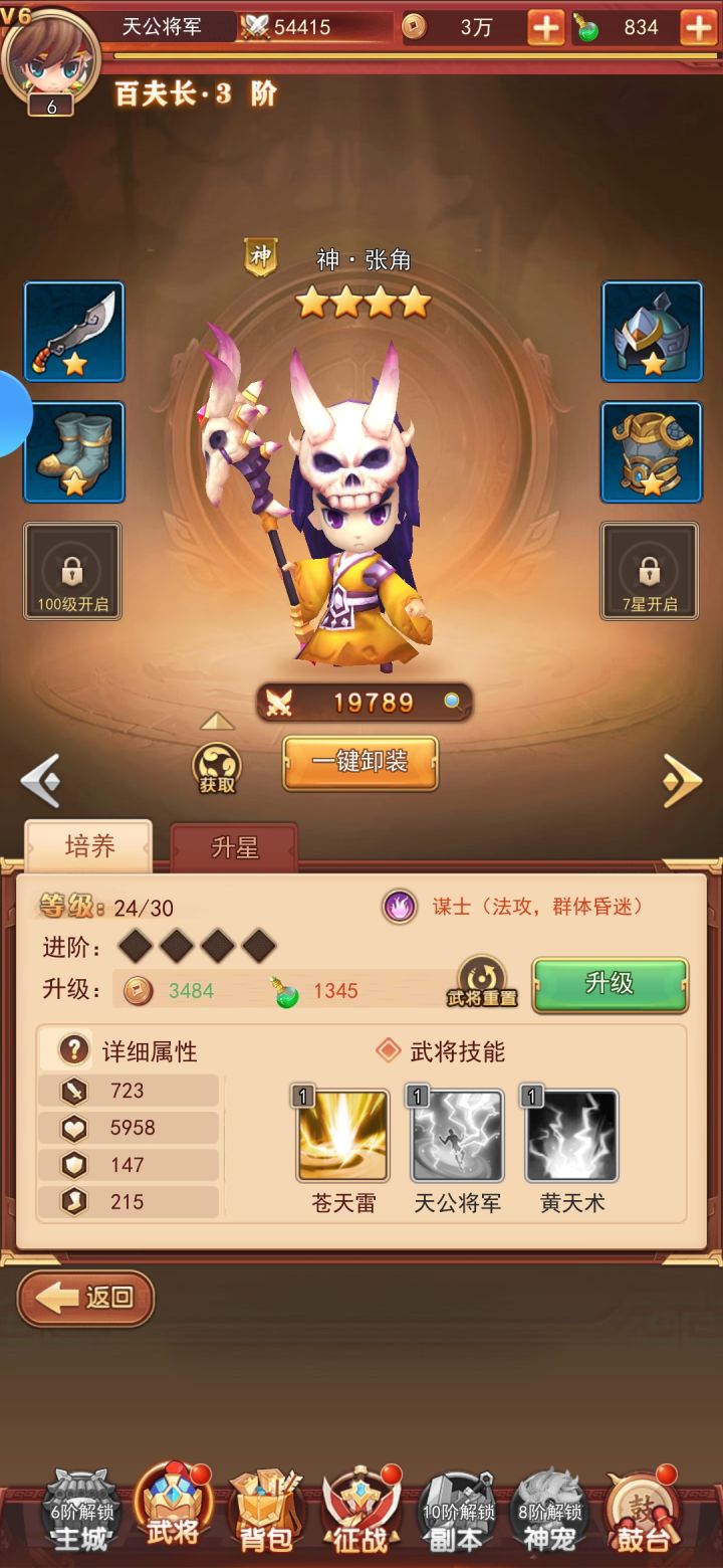 美术3D品质很一般,画风陈旧类似十年前页游,界面设计看一眼就知道是干啥的,UI布局很常规,没什么新鲜感。主角的Q版3D形象太一般了,三国题材也是用到烂,没留下什么深刻印象。