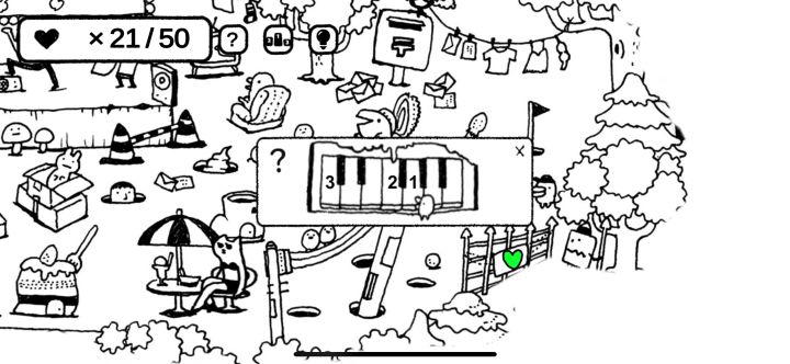 超级可爱有趣!!很多有意思的小场景!值得花十几分钟玩一玩,实在找不到可以看个广告用提示,提示会有一个红色手套指出没找到的💗截图了唯一一个不懂琴谱的提示,最后一张是攻略给大家参考