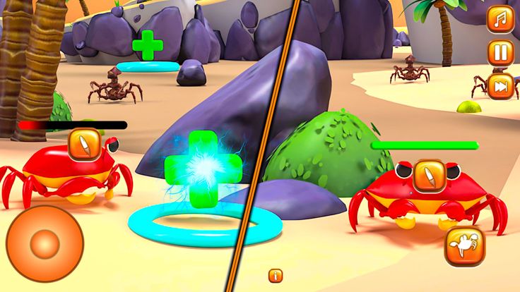 在这场激动人心的冒险中,您扮演了一只聪明而足智多谋的螃蟹,它刚刚偶然发现了一条令人垂涎欲滴的鱼。 想要一顿安静的大餐,你寻找完美的地点,但你的计划突然被一群渴望抢夺你美味宝藏的敌人螃蟹打断!