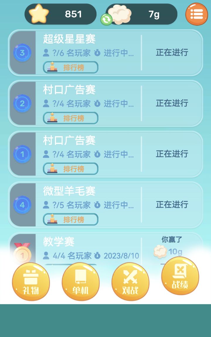 1调整了对战相应的积分规则 ,避免产生较多重分结果2加载时间不计算入比赛时间了 3.增加绑定微信功能,再也不怕账号丢失了4可以和数涂共通羊毛拉,只要绑定同一个微信就行了 5和数涂一样增加了改昵称功能