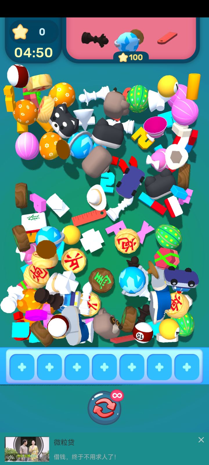这是一款极度考验眼力的休闲消除游戏,玩家需要在堆起的物件中找到相同的三个物件进行消除,来清空所有东西,快来体验一下吧!#宝藏游戏安利派对#游戏安利#游戏推荐#休闲游戏#休闲#消除