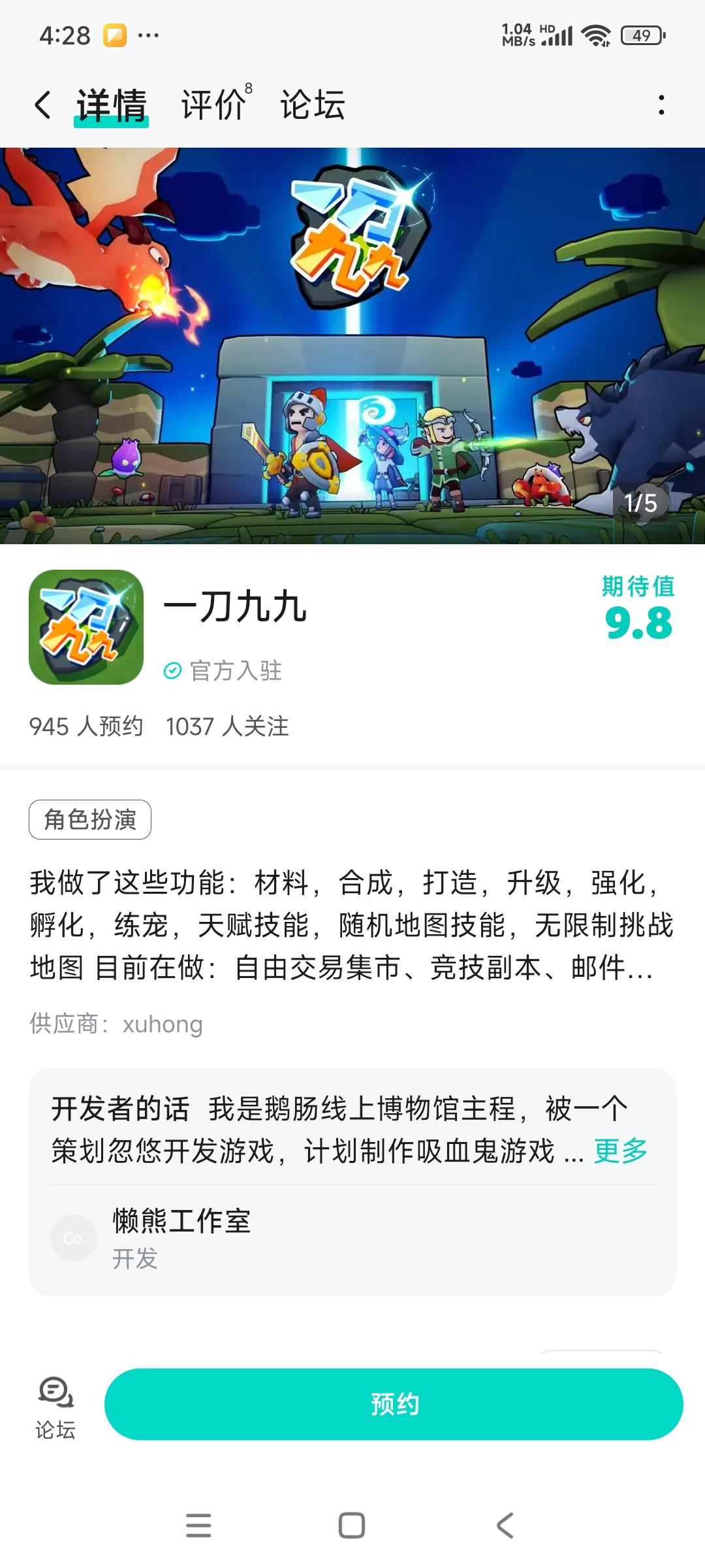 新游预约,战斗捉宠类游戏《一刀九九》