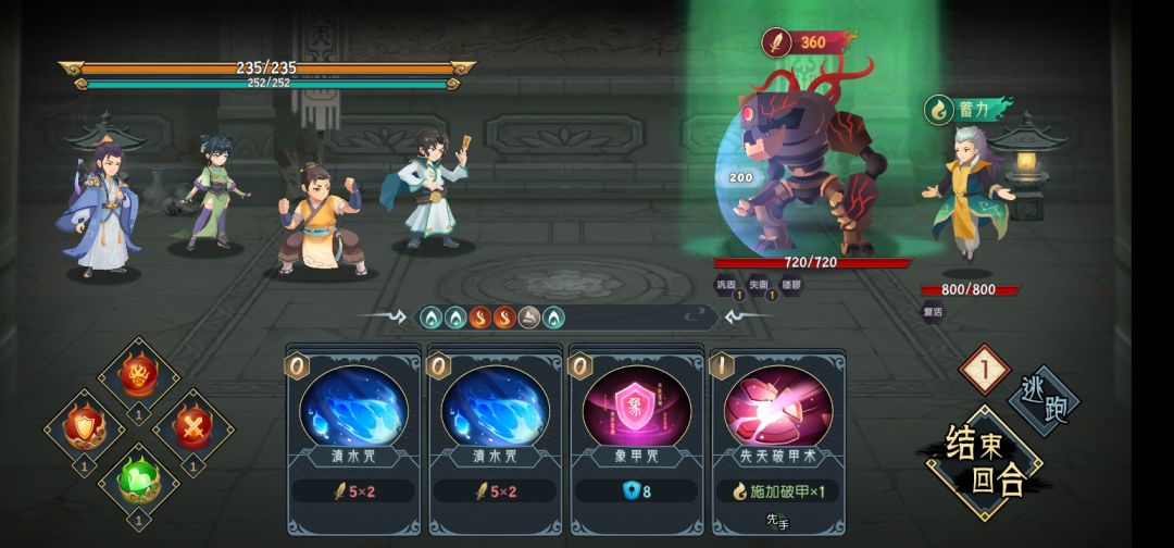 同上一章配置,加入了系统首抽送的加费易伤工具人 战斗部分 小怪部分注意,狼在攻击意图时秒不掉就别打,千万别打,不然你会知道100伤害加成的恐怖 地牢小怪只有初始怪会求援,优先解决,用九天龙威加幻妙决,然后卡水的能量秒掉两个(或者一秒吸重伤) 地牢野猪(一只) 牌序,先挂易伤,然后打左边第一堆牌,过牌出幻妙,然后九天龙威,幻妙。 如果在打九天龙威前当前能量为水,或在幻妙复制后及其复制牌的当前能量为水