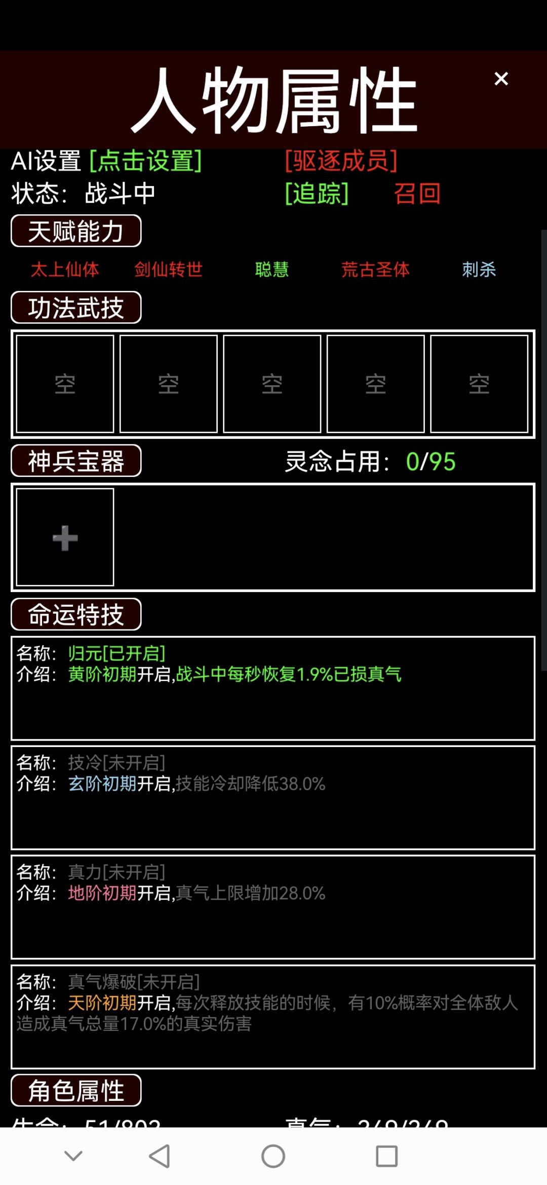这个游戏什么都不管也可以玩,AI自动的,费心费力的去弄说不定还不如纯挂着。所以心态要好,没有一个最优的玩法,自己觉得对就好了。 总结几点我认为有用的。 1.开局主角资质,我觉得也无所谓,刷建议刷灵念高的。境界可以靠丹药,装备才是加战力的核心。主角去打材料,只能没收主角的材料,安心当个被资本家剥削的我觉得挺好的。 2.招人,先招满再说。只要够闲可以反复存档刷天骄。 3.先培养炼器,前期丹药的作用不算