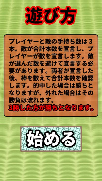 敵が合計本数を宣言しプレーヤーが数を宣言します。