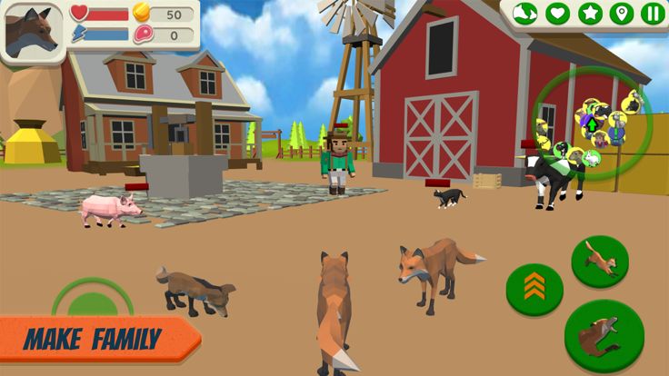 Create your own fox and go in search of adventure. A large location with forest, rivers, fields and farms is available for research. Hunt for animals, make a family, improve your fox and your family members. Do different tasks and become stronger. Fi...