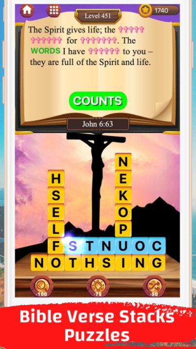 Bible Verse stacks Word Puzzles: The best way to improve your knowledge of the Bible by simultaneously playing a word stacks puzzle game!
