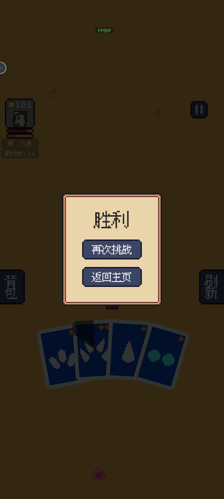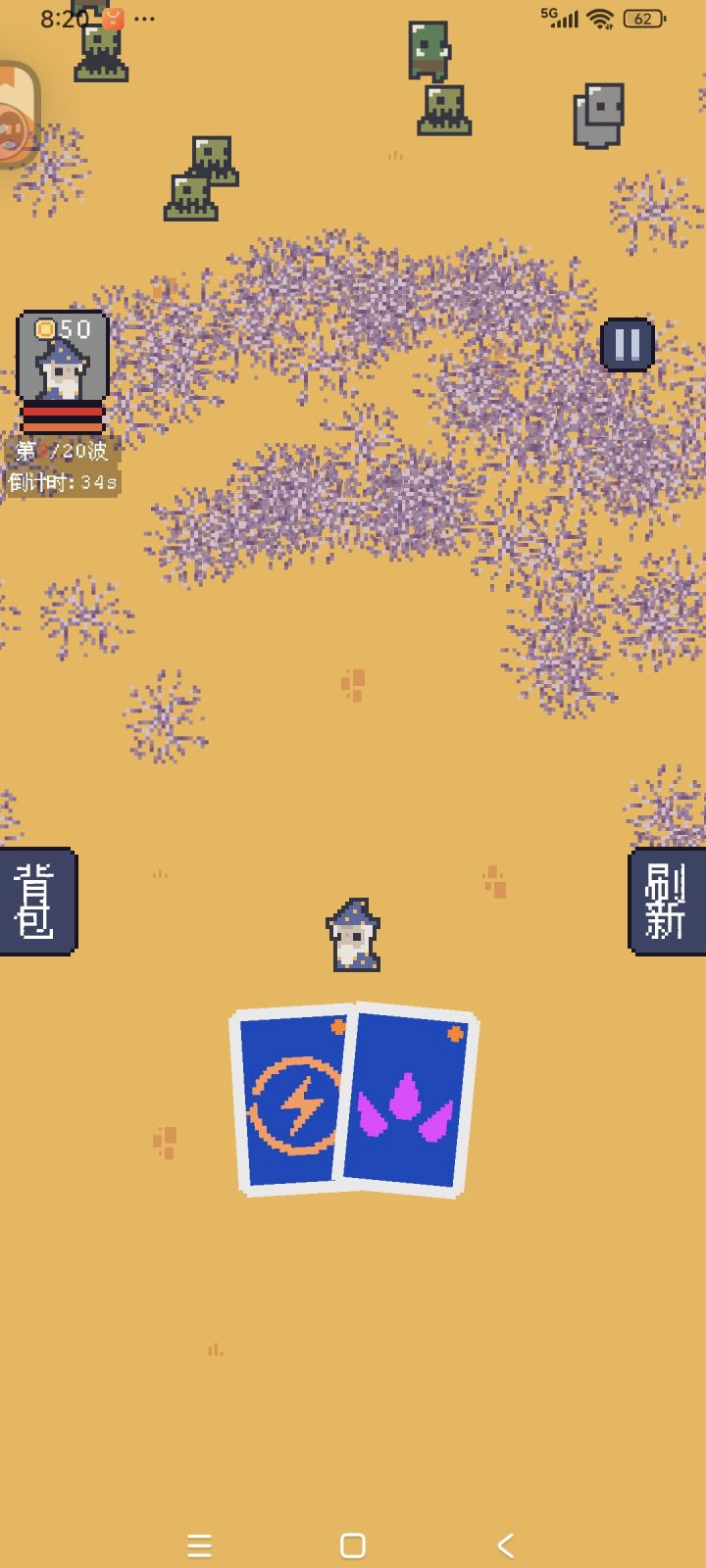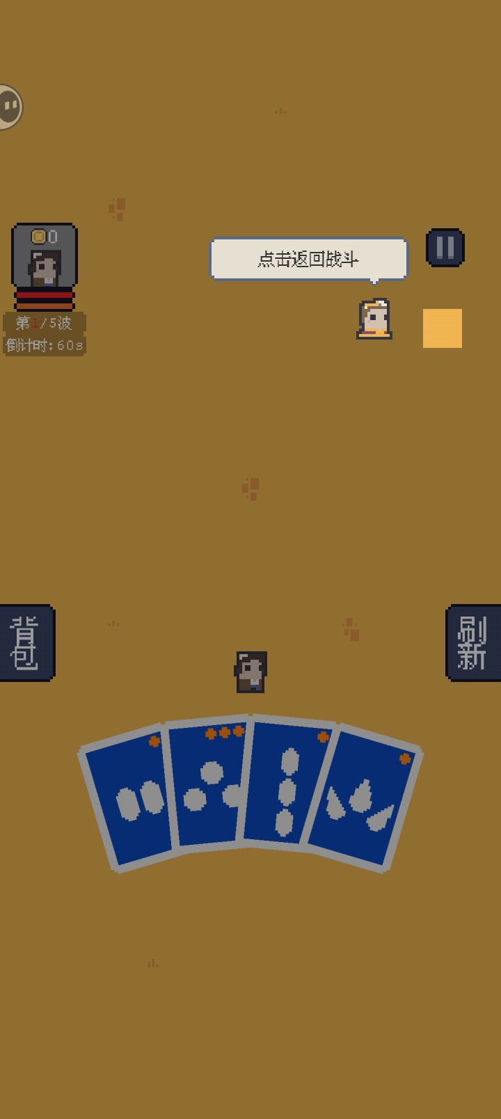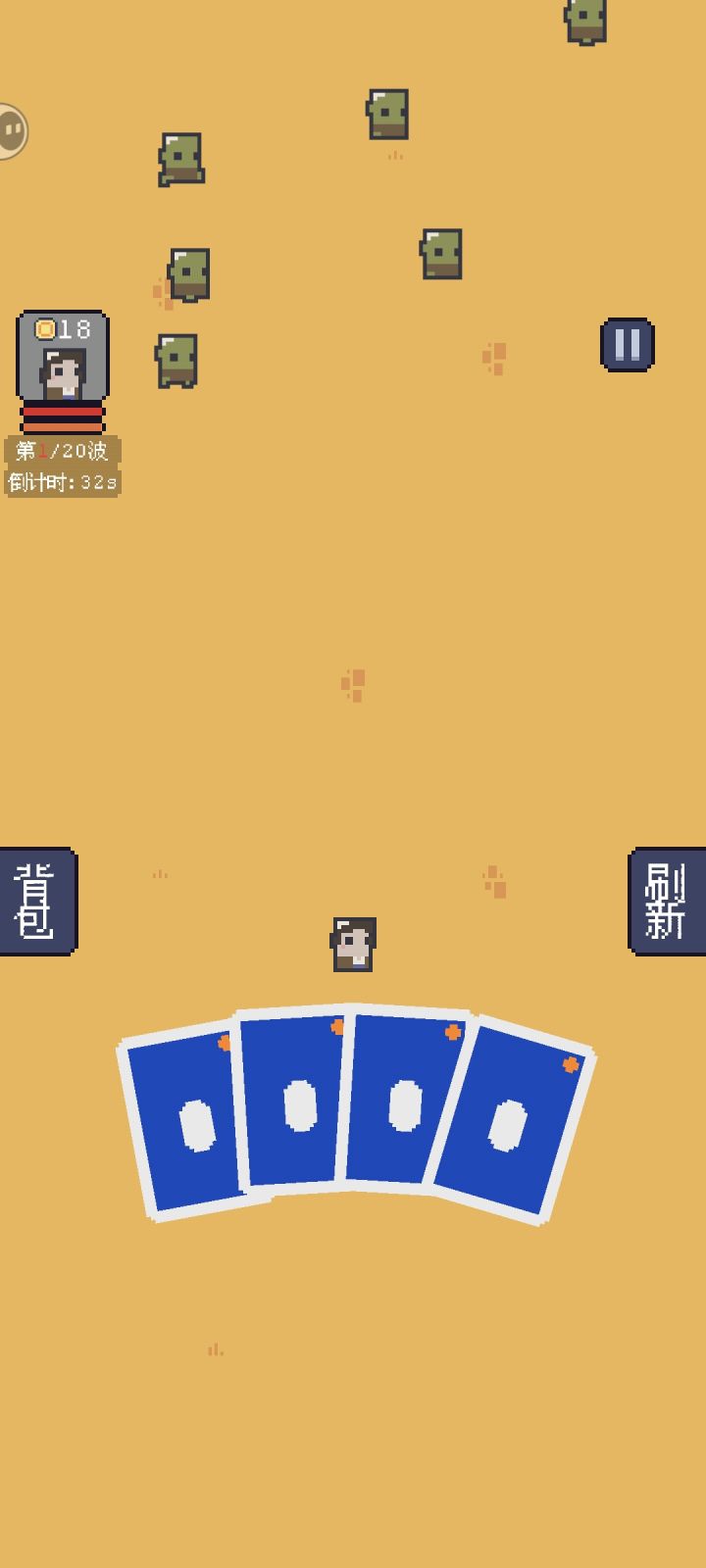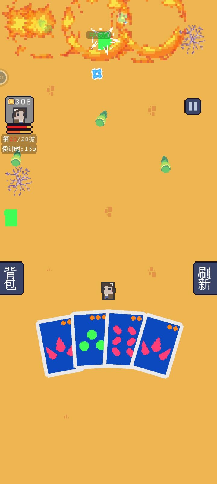 💡游戏创意:本以为是个割草游戏,没想到还真的是割草游戏,不过人物全程不能动,只能丢卡牌放弹幕,注意卡牌有能耗、方向,特殊效果,比如魅惑、冰冻、爆炸等等。商店可以把不需要的卡牌出售了,然后购买强力卡牌。需要注意后期有些怪移速快带分裂,最好选点强力卡牌。