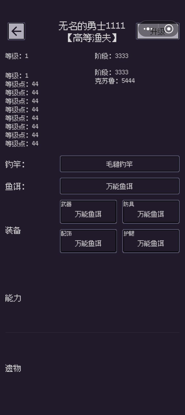货币地狱,一个钓鱼游戏光货币种类就起码4种,而且买卖机制非常反直觉,你钓到鱼,没法直接卖,得攒够商店需要的数量才能卖出去,非常恶心。纯文字图鉴也根本触发不了我的收集欲,一个钓鱼游戏目前让我花费时间最多的扒拉灌木做东西。钓鱼也不是钓鱼,克苏鲁也没看明白在哪,赞助倒是贴的挺快,总之,非常不推荐。