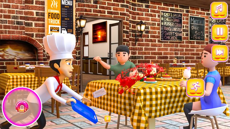 这个有趣的烹饪游戏中的厨师将恶作剧提升到一个全新的水平。 当第一位顾客进入他的餐厅并要求一杯冰镇果汁时,小丑大厨准备提供一个令人捧腹的惊喜。 他很快就榨好了果汁,但就在他接近客户时,哎呀! 玻璃杯从他手中滑落,落在顾客身上,他看起来就像穿着一件果味连衣裙。 所有的顾客都忍不住笑了起来,对他大笑,但他...