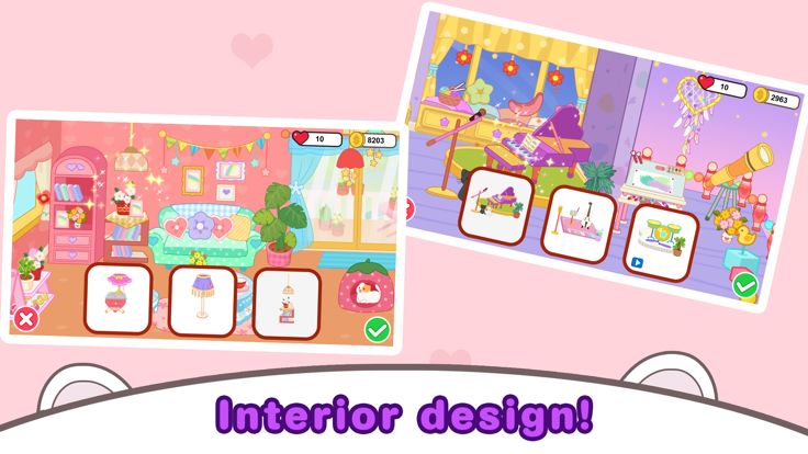 这是一款让玩家装修自己房间和花园的模拟游戏。通过玩游戏满足农场顾客的订单需求,赢得装修所需的金币和桃心。这款游戏采用可爱的动漫卡通画风,让你拥有一套完全自己设计的梦想房屋,实现设计愿望,从客厅,卧室,书房到花园,打造自己的梦幻之家!游戏的画风十分的可爱清新,游戏角色可以自由搭配,还可以选择不同的宠物。