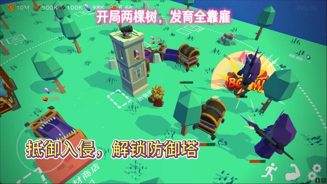 撸树致富,招募工人一起撸树挖矿采石头,而这竟是模拟经营塔防游戏