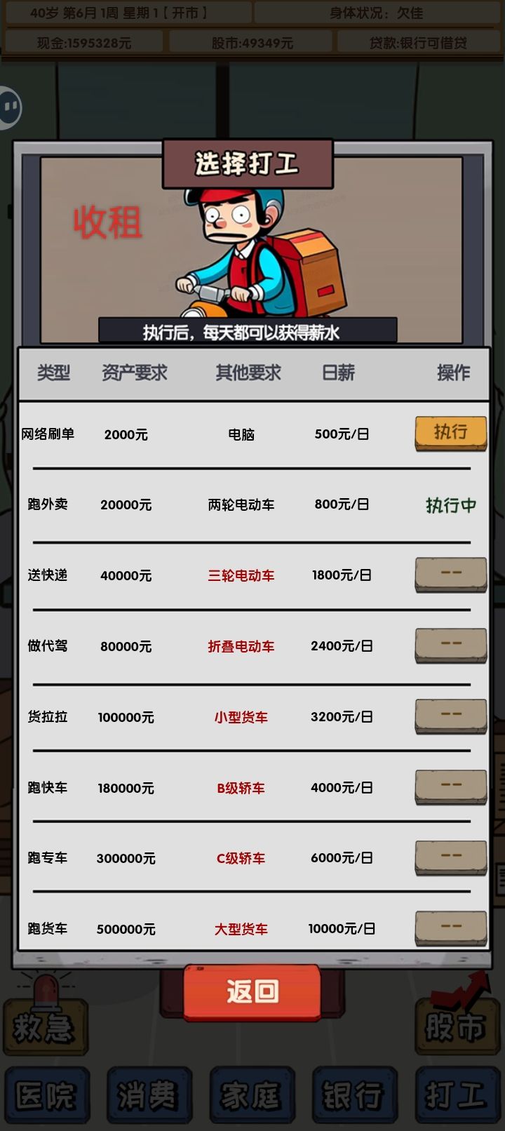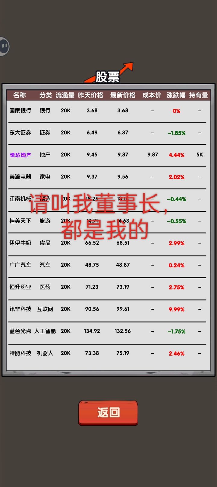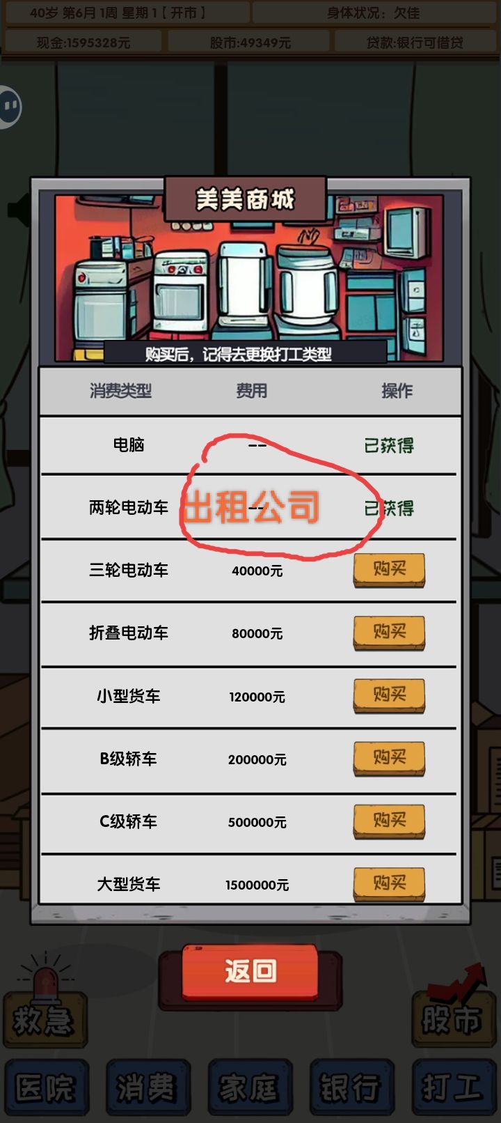 像这样全买一遍,刚开始先买2万的车子,用来打工,然后趁前面猛涨贷款买股票,涨完后全卖了。