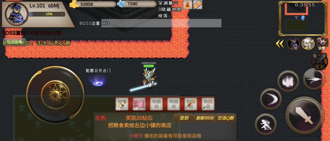 Boss技能: 冲撞:boss会不定时冲撞,被撞到后100%眩晕 大火球:boss在释放大火球时有动作前摇,我们需要到地图中间,进入防护罩,或者自身有无敌技能,恶魔邪盾之类的装备也可以抵消 天上会不定时下火球雨,身上后灼烧状态时,到地图中间碰一下小水池即可解除 打法: 进图后等2秒,使用boss传送卷轴,传送到boss身后,然后先使用2技能石化boss,4技能输出1套,然后重复操作即可。(小技巧: