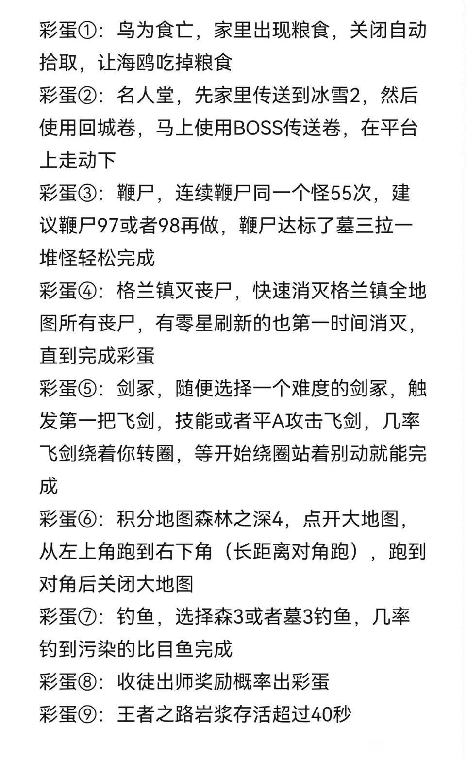 1、金牌屠夫(累计爆伤+22%):杀怪10W只去墓穴1挂机 2、金牌伐木工(累计攻速+37%):砍掉树500棵注意:院子里面最多存在20棵 3、金牌农民(累计爆率+60%):收获粮食500个目前是3个小时,粮食成熟,新版本会改成15分钟 4、大玩家(血量累计+6200):去普通地图2000次建议:传送到沙漠2,然后往右走3秒,返回1层再进来,如此反复 5、冒险王(累计鞭尸+12%):去隐藏地图50