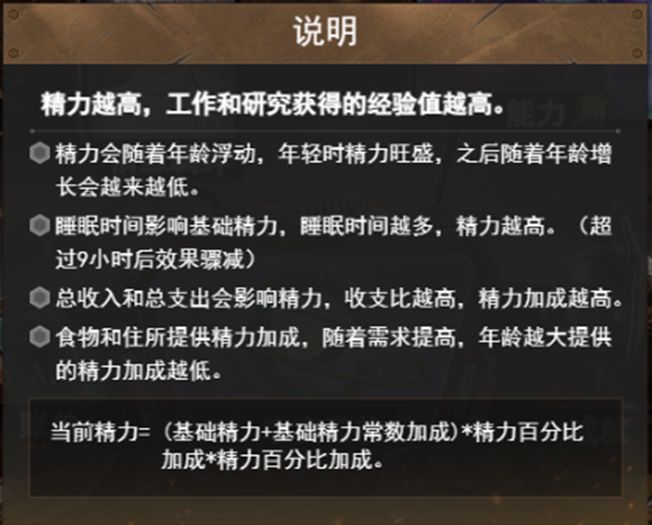 精力是游戏的基石,所以学会增加精力的方法尤为重要,接下来就给大家讲解一下我的精力攻略。首先就是将研究中带有精力加成的尽量研究到满级,也就是精神科学研究,研究只有这一个是对精力加成的,大家在选择身世卡的时候,有条件的可以买一张精力加成的身世卡。初始选择能力一定要选择加精力的,可以看广告换几次,选择加精力百分比和基础精力加成的。在将睡眠时间调整到9个小时,记住要想精力高一定要吃好喝好住好在将加精力的