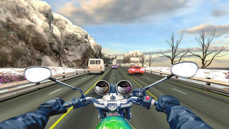 通过充满颠簸和跳跃的大型高速公路体验自行车赛车游戏的快感。要成为一名自行车赛车手,请加快您的自行车速度以追逐巨大的快速交通。