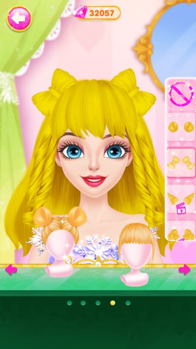 请自由使用各种修、剪、染、烫美发工具,精心护理公主的柔顺秀发,并为她设计独一无二的完美发型!完成秀发护理、发型设计后,为闪耀公主选择眉毛、美瞳、眼影、睫毛、口红唇彩、腮红等等妆容,尽可能尝试各种妆扮和颜色,为她打造绝色妆容!