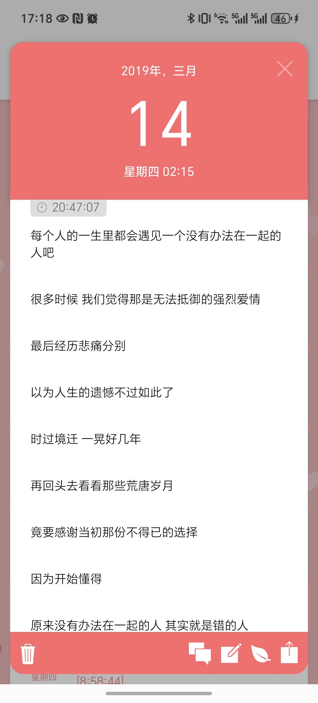 真的非常可惜,在19,20年和我连了100天日记的一个姐姐,最少比我大5岁,我初三她大二,我没有她的联系方式真的有点可惜,因为我非常想知道过了五年后她生活的怎么样了,毕竟也是分享了100多天的生活。可能她当时烦恼的事我也能理解了。