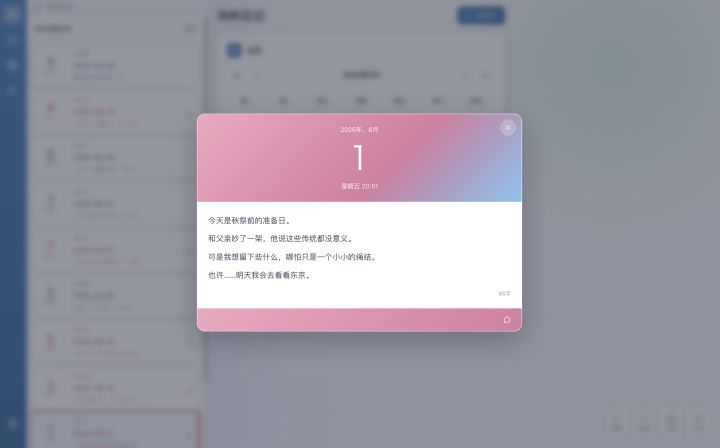 八年前,我写下了《你的日记》的第一行代码。那时候我只是想做一个,把动画里那种温柔感觉带进现实的日记 App。这 8 年里,它陪过很多人:有人记录恋爱,有人记录备考,有人记录孤单,也有人只是每天写一句话。但老实说,这个 App 一直被大家吐槽: • “界面太老了” • “能不能更流畅一点?” • “图片为什么要会员?” • “草稿为什么容易丢?”我都记着。这半年,我做了一个决定: