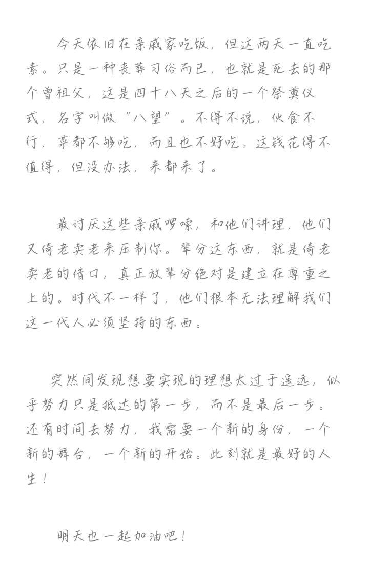 最近也不咋写了,从过年开始我也放弃挣扎了想到在“你的日记”找到了你我的第一个匹配对象能坚持这么久哇我确是蛮幸运的从我高二到研二一直很珍惜有你这样一个说说心声的朋友特别是当时我好像是大二知道你居然也报了我本科的学校虽然一直把你当作我不曾谋面的妹妹但当时觉得马上就要和我在同一个校园生活这不是天降青梅这是什么?什么日漫剧情啊喂当时的我也没想到我们始终是在各自道路上奔跑偶尔在