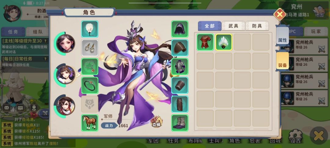1.新手加点。游戏有三个人物,分别是主将,军师,先锋。可以理解为主将是坦克,抗伤害的,属性点主加体魄。军师是治疗辅助法系输出,主加智力。先锋是物理输出主加武力。2.升级跟着主线走,建议打小怪升级的时候不要带小兵,反正也不差那点输出,小兵损失了补充太麻烦。3.一定要加军团,这个对新手帮助很大。军团一般都会提供新手装备,新手技能书,前期的帮助很大,而且每天都有一大笔的军团分红。(军团每日贡献越大,