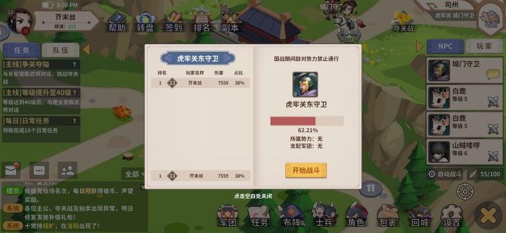 1.新手加点。游戏有三个人物,分别是主将,军师,先锋。可以理解为主将是坦克,抗伤害的,属性点主加体魄。军师是治疗辅助法系输出,主加智力。先锋是物理输出主加武力。2.升级跟着主线走,建议打小怪升级的时候不要带小兵,反正也不差那点输出,小兵损失了补充太麻烦。3.一定要加军团,这个对新手帮助很大。军团一般都会提供新手装备,新手技能书,前期的帮助很大,而且每天都有一大笔的军团分红。(军团每日贡献越大,