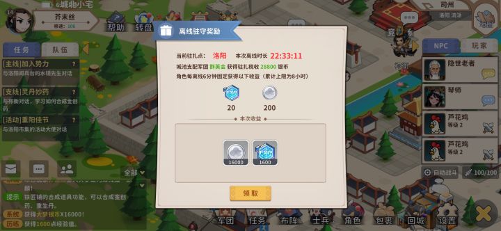 一上来就有惊喜,昨天随意点的地图驻扎,就看洛阳经验高,一来就领经验,直接升级三级#攻略#游戏推荐#游戏安利