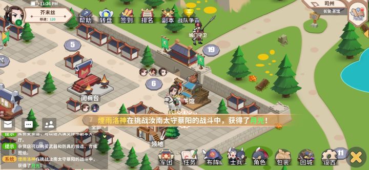 第一天,1.上线肯定是要清主线的。主将军师先锋入队,打一打野怪升级,顺带练兵(英雄很抗揍,小兵站后排,兵种道具肝帝不够用)2.熟悉地图,加入势力,进入军团。地图与势力就是三国背景的,三国米应该很熟悉不赘述。这里主要讲讲野外势力与资源相关的东西吧。城镇、关卡与港口,会刷各种中立敌对首领与世界boss,主要掉落武将养成与士兵养成道具。装备,宝石,合成卷轴,士兵转职书,还有声望,功勋,实战点