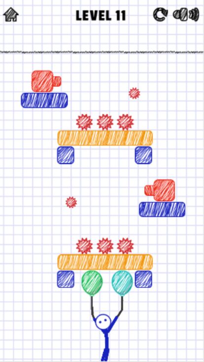 這是一個火柴人利用氣球上升的遊戲。 在遊戲中,火柴人想試試氣球能讓自己上升到什麼位置,但是空中有很多尖刺和障礙物,玩家要小心保護好氣球,並要利用情境中的木塊來助力,快來闖關吧!