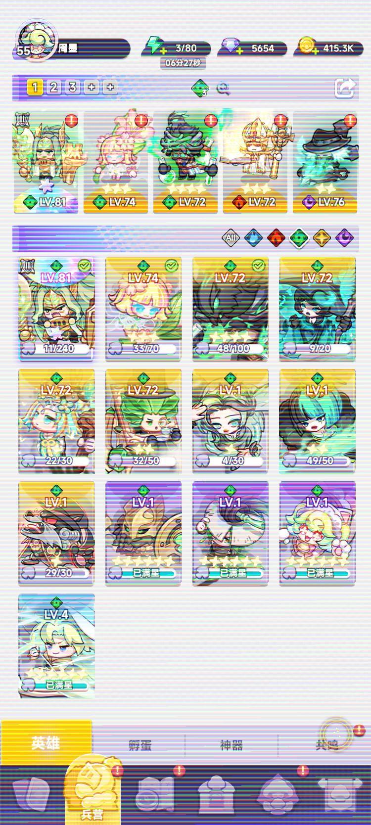 新的双天至尊蛾子10星暗老头7星,币留着等新角色,其他资源继续拉暗老头和梅林,现在福利好了不氪也能勉强撵上进度