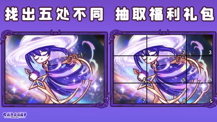 亲爱的召唤师们,新角色黑洞菇 · 星烬现已闪亮登场!身环星环,剑执裁决,无尽神秘~细心的你有没有发现,今日的星烬藏着小不同?快把你的发现分享在评论区,一起瓜分50w+钻石+10连抽福利暴击!➤活动内容【活动时间】2026年3月12日——2026年3月22日【参与方式】各位召唤师在下方图片找到五处不同的地方,在评论区评论对应的区块序号即可参与抽奖!例如:1,2,3,4,5【活