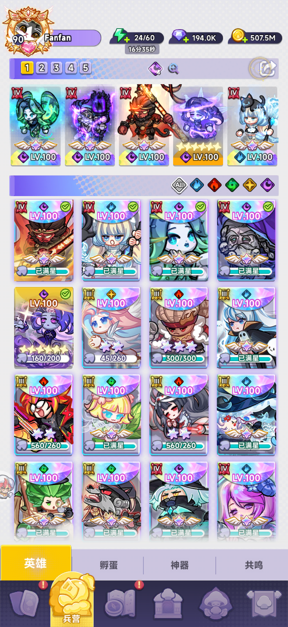 新的双天至尊蛾子10星暗老头7星,币留着等新角色,其他资源继续拉暗老头和梅林,现在福利好了不氪也能勉强撵上进度