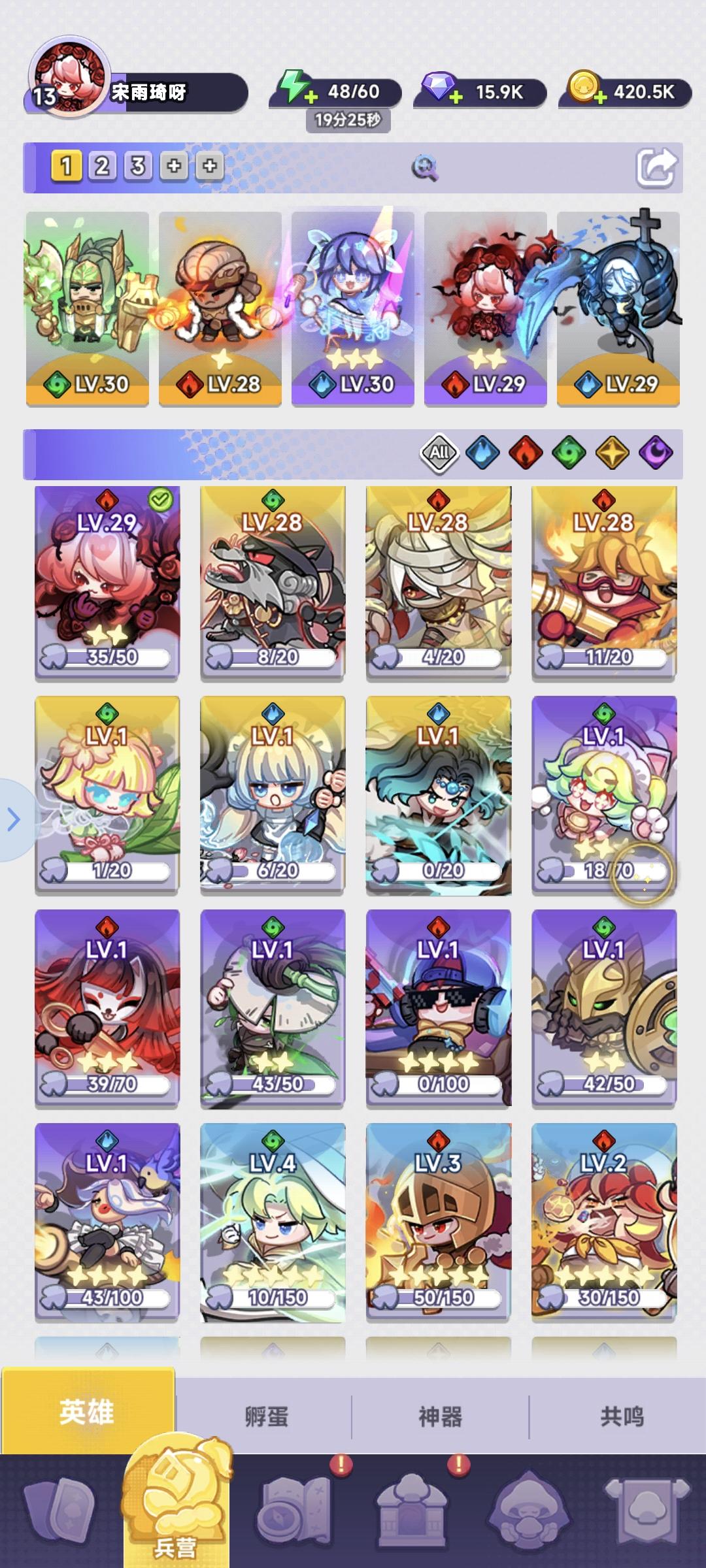 玩第9天了,发现养歪了,建议养沉默菇1星+暗射菇1星,炼金菇可以拿来过渡,神器养火炬,s拳套,s弓跟s法杖都行,本人也懒得打,后面卡了发现是养成有问题,光暗的抽奖建议攒起来用,攒100抽稳定保底,普通池的随便抽,钻石存个20k就行,其他想买啥买啥主要是留着活动,现在没啥用途我的建议是留着后面可以抽光暗
